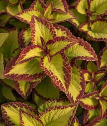 « Back to CatalogColeus 'Stained Glassworks™ Velvet' Category: Annuals Sub-Category: Sun Exposure:Full Sun (6+ Hours), Part Sun/Part Shade (4-6 Hours), Full Shade (6 or Less HoursHeight inches:12-24"Space:12-24"Flower Color:Orange, FoliageCharacteristics:Attractive FoliagePhoto Courtesy of:Dummen OrangeContainer Size:Single PotNew for 2026:New Next Product:Coleus 'Talavera Moondust'Previous Product:Coleus 'Rainbow Color Pride' « Back to CatalogColeus 'Stained Glassworks™ Velvet'